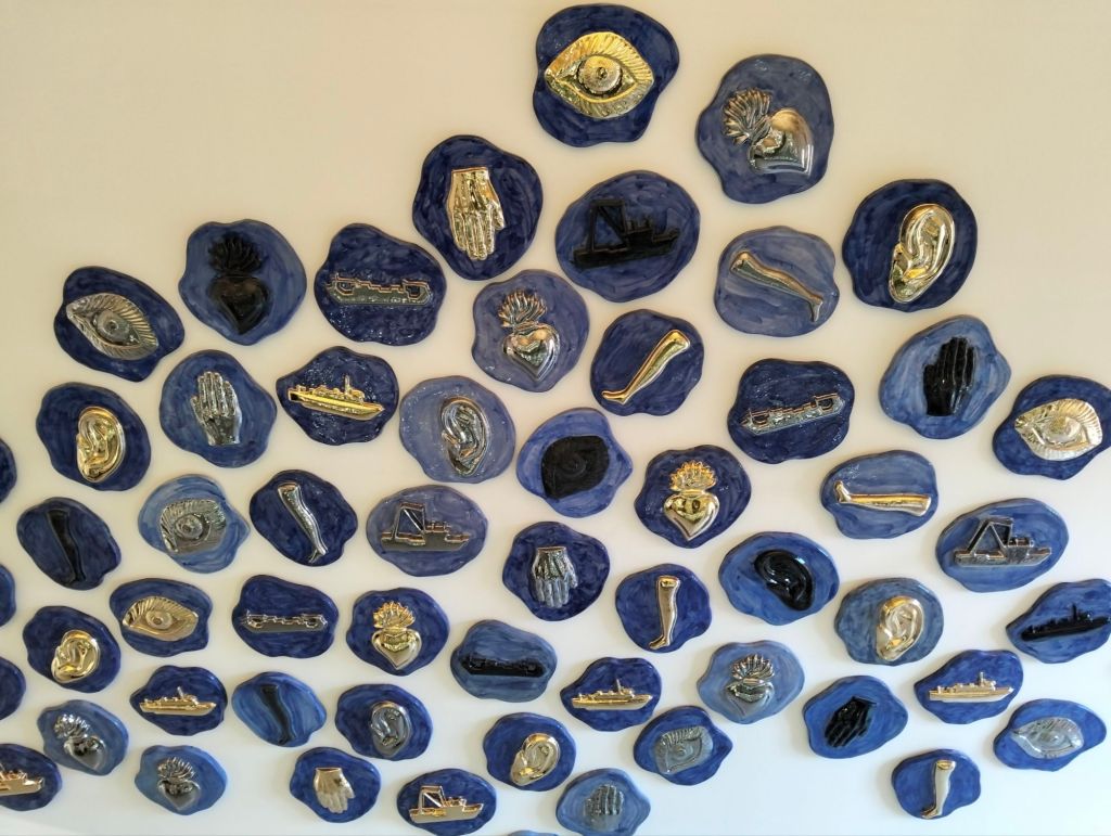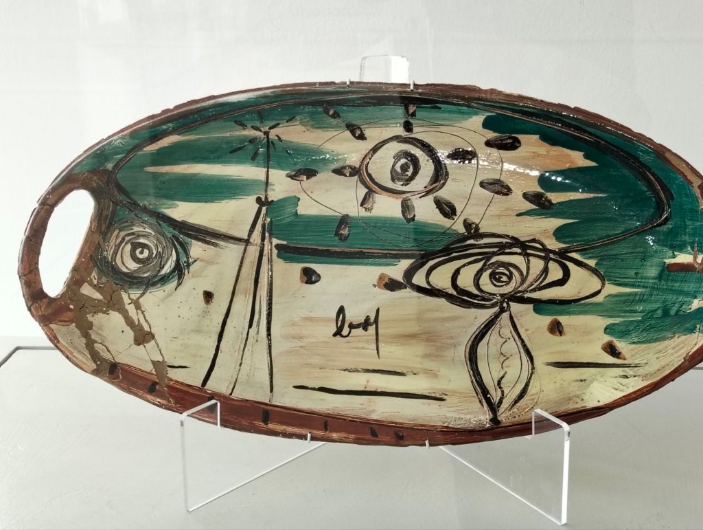 Le ceramiche di Baj (prodotte ad Albissola negli anni ’50, Imola negli anni ’80, Faenza e Castellamonte negli anni ’90), vengono “fatte dialogare” come dicono quelli bravi, sia con la collezione savonese, sia con il particolare adattamento surrealista al paesaggio mediterraneo che è diventata la Casa di Asger Jorn.