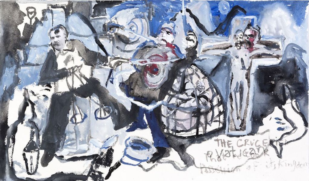 Nietzsche was not old / when one day while / walking the piazza / he saw a Horse / being beaten / badly by a horseman / it was so badly / beaten the horse / fell on the floor / Nietzsche ran to / rescue the horse he / fell as he assisted / cried the police arrived / and led him to the police / station on Pò street, / eventually, he returned / to his room, where he / stripped naked and went / into frenzy into a dance / of Dionysian nature, he / proclaimed that he was / Jesus on the cross, and he / took over his kingdom, / by putting the Pope into / prison and the / Kaiser of Germany. The landlady / heard the / sound of his / room, called his mother / who took him / to a sanatorium / and then home / that where he / died his / sister / Elizabeth / took / care / of him / it is possible / that his / “catatonic” state / was a way to reign / the world. He / played and composed / music during / these years / before he died / He was obsessed of / Eagles mating / Lambs, possibly / he was the Lamb.