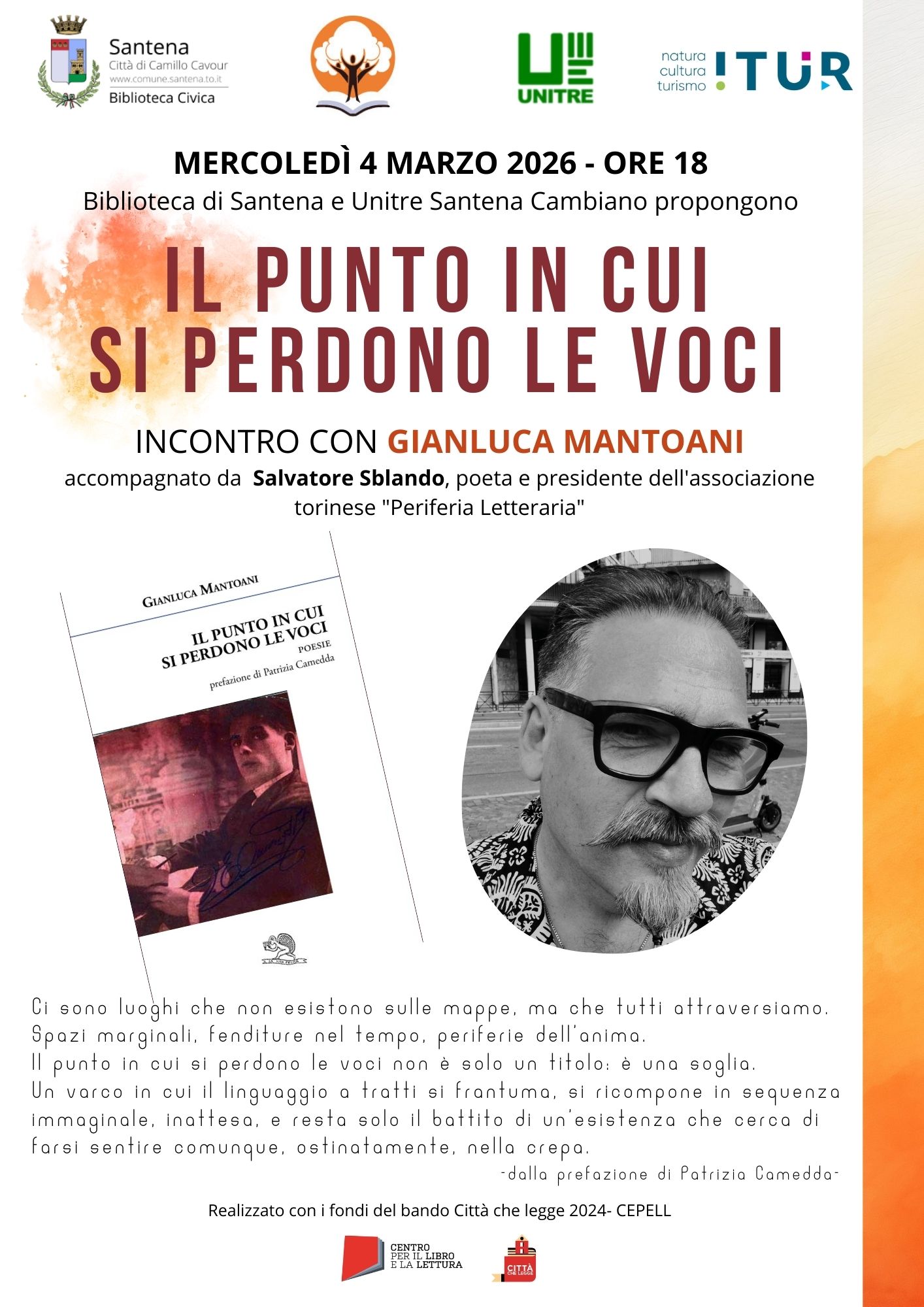 L’ incontro è organizzato dalla Biblioteca di Santena in collaborazione con l’Unitre di Santena-Cambiano, che ringrazio di cuore.
